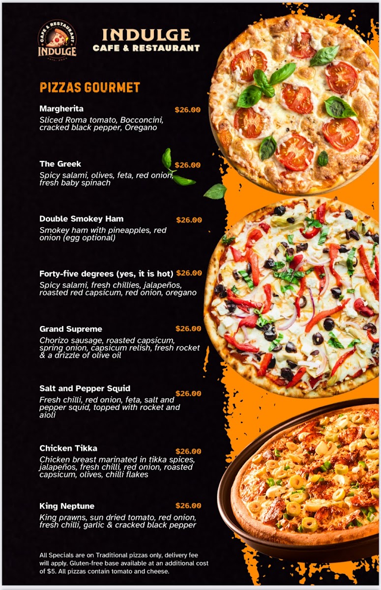 Welcome to Indulge Cafe & Restaurant, tucked away in Bayswater, WA. This vibrant cafe serves a delightful array of dishes designed to satisfy every palate. Their menu features an enticing selection of traditional and gourmet pizzas, with customer favorites like the Mexican Volcano Pizza—spicy, cheesy, and bursting with flavor.